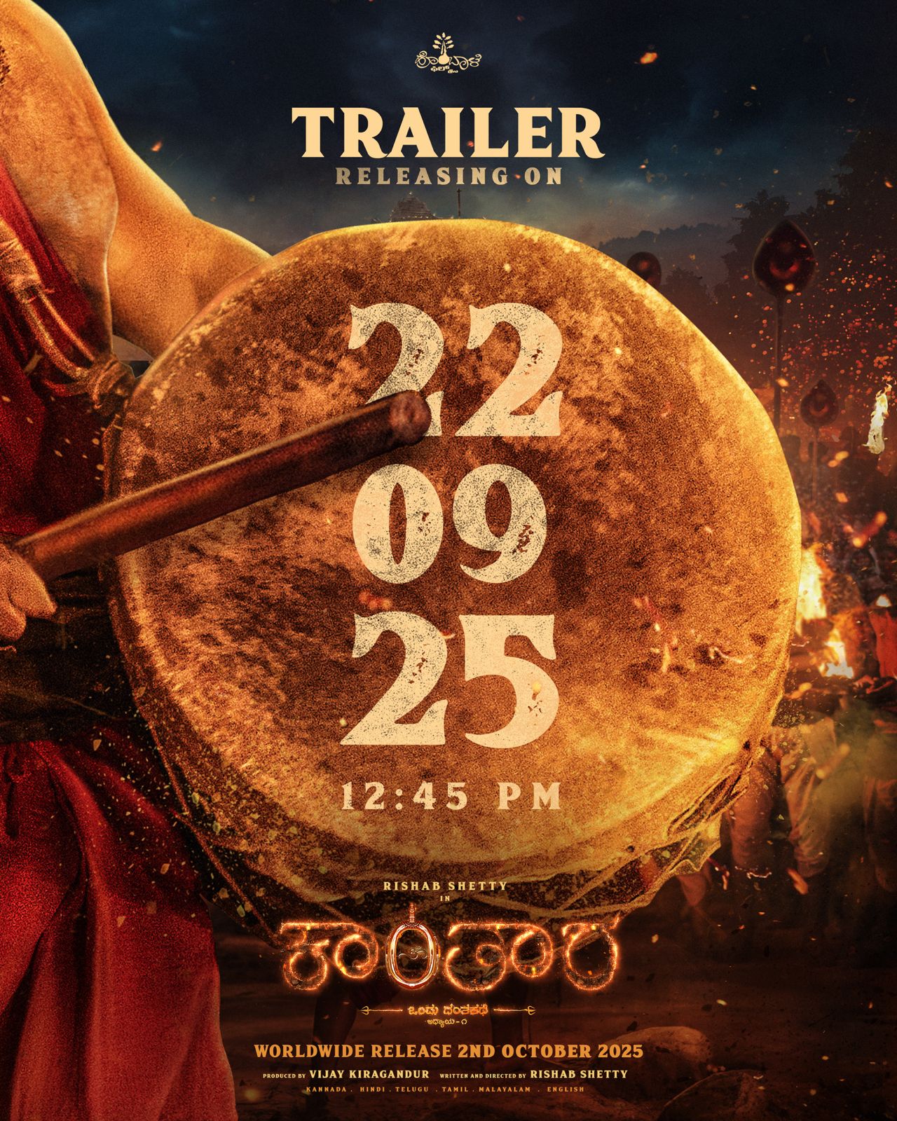 ಬಹು ನಿರೀಕ್ಷಿತ ‘ಕಾಂತಾರ ಅಧ್ಯಾಯ 1’ ಸಿನಿಮಾದ ಟ್ರೇಲರ್ ಇದೇ ಸೆಪ್ಟೆಂಬರ್ 22, 2025 ರಂದು ಮಧ್ಯಾಹ್ನ 12:40ಕ್ಕೆ ಅಧಿಕೃತವಾಗಿ ಬಿಡುಗಡೆಯಾಗಲಿದೆ ಎಂದು ಹೊಂಬಾಳೆ ಫಿಲಂಸ್ ಇಂದು ಘೋಷಿಸಿದೆ. ಈ ಚಿತ್ರವು ಅಕ್ಟೋಬರ್ 2, 2025 ರಂದು ವಿಶ್ವಾದ್ಯಂತ ಅದ್ದೂರಿಯಾಗಿ ತೆರೆ ಕಾಣಲಿದೆ.