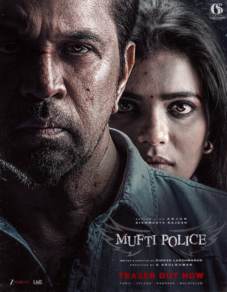 ಆಕ್ಷನ್ ಕಿಂಗ್ ಅರ್ಜುನ್ ಮತ್ತು ಐಶ್ವರ್ಯ ರಾಜೇಶ್ ಮುಖ್ಯ ಭೂಮಿಕೆಯಲ್ಲಿ ನಟಿಸಿರುವ ಮಫ್ತಿ ಪೊಲೀಸ್ ಸಿನಿಮಾದ ಟೀಸರ್ ರಿಲೀಸ್ ಆಗಿದೆ. ಜಿ.ಎಸ್. ಆರ್ಟ್ಸ್ ನಿರ್ಮಿಸಿರುವ ಈ ಚಿತ್ರವನ್ನು ನಿರ್ಮಾಪಕ ಜಿ. ಅರುಲ್ ಕುಮಾರ್ ಪ್ರಸ್ತುತಪಡಿಸಿದ್ದಾರೆ. ದಿನೇಶ್ ಲೆಟ್ಚುಮನನ್ ನಿರ್ದೇಶನದ ಚೊಚ್ಚಲ ಚಿತ್ರ ಇದಾಗಿದೆ.