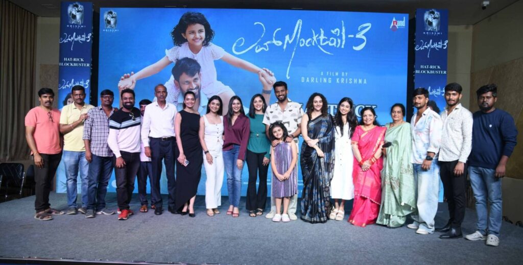 ಡಾರ್ಲಿಂಗ್ ಕೃಷ್ಣ ನಿರ್ದೇಶನ ಮಾಡಿ, ನಾಯಕನಾಗಿ ನಟಿರುವ ಲವ್ ಮಾಕ್ಟೇಲ್೩ ಇದೀಗ ರಾಜ್ಯಾದ್ಯಂತ ಯಶಸ್ವೀ ಪ್ರದರ್ಶನ ಕಾಣುತ್ತಿದೆ. ಈ ಖುಷಿಯನ್ನು ಹಂಚಿಕೊಳ್ಳುವ ಸಲುವಾಗಿ ಜಿಟಿ ಮಾಲ್ನ ಎಂಎಂಬಿ ಲೆಗೆಸಿಯಲ್ಲಿ ಚಿತ್ರತಂಡ ಸಕ್ಸಸ್ ಮೀಟ್ ಅನ್ನು ಆಯೋಜಿಸಿತ್ತು. ಈ ಸಂದರ್ಭದಲ್ಲಿ ಲವ್ ಮಾಕ್ಟೇಲ್ ಮೊದಲ ಆವೃತ್ತಿಯಿಂದ, ಲವ್ ಮಾಕ್ಟೇಲ್೩ ವರೆಗೆ ಡಾರ್ಲಿಂಗ್ ಕೃಷ್ಣ ದಂಪತಿಗೆ ಜೊತೆಯಾದವರೆಲ್ಲ ಹಾಜರಿದ್ದದ್ದು ವಿಶೇಷ. ಈ ಸಕ್ಸಸ್ ಮೀಟ್ನಲ್ಲಿ ಡಾರ್ಲಿಂಗ್ ಕೃಷ್ಣ ದಂಪತಿ ಸರಣಿ ಗೆಲುವಿಗೆ ಕಾರಣರಾದ ಚಿತ್ರತಂಡಕ್ಕೆ, ಪ್ರಚಾರ ಚಟುವಟಿಕೆಯಲ್ಲಿ ಭಾಗಿಯಾದವರಿಗೆ ಮತ್ತು ಸಮಸ್ತ ಪ್ರೇಕ್ಷಕರಿಗೆ ಧನ್ಯವಾದ ಸಲ್ಲಿಸಿದರು.